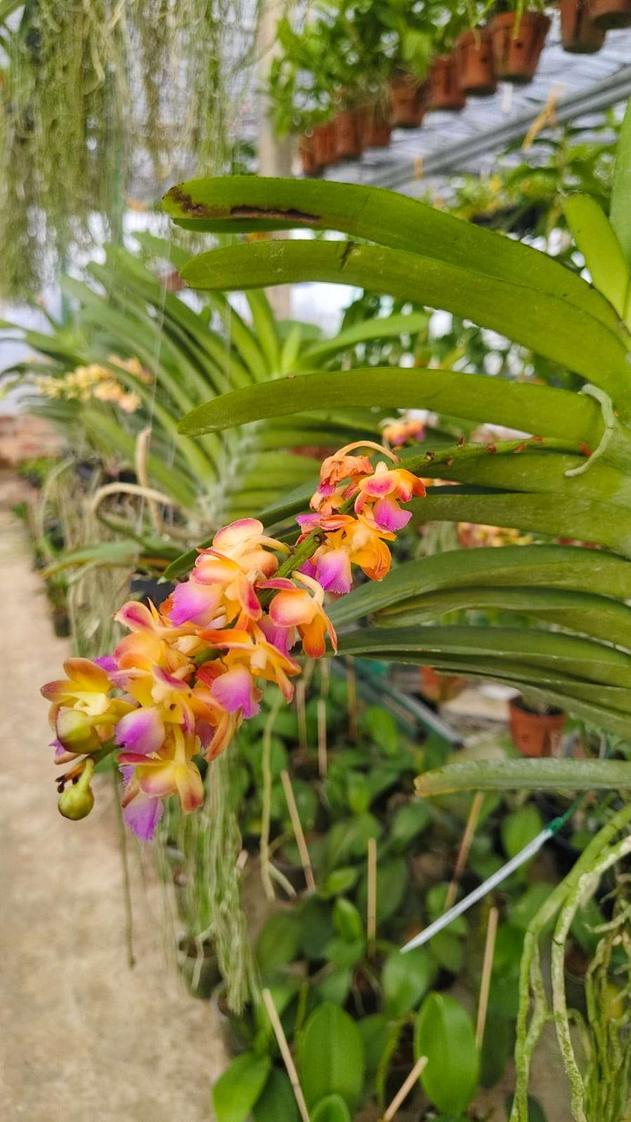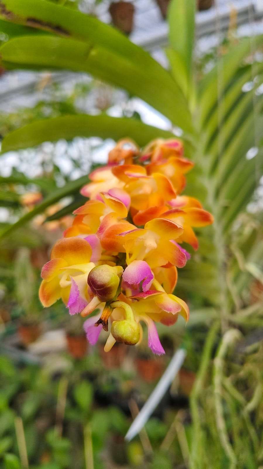 Aerides × Bangkok Sunset is a popular hybrid orchid admired for its vibrant colors, strong fragrance, and graceful hanging flower sprays.