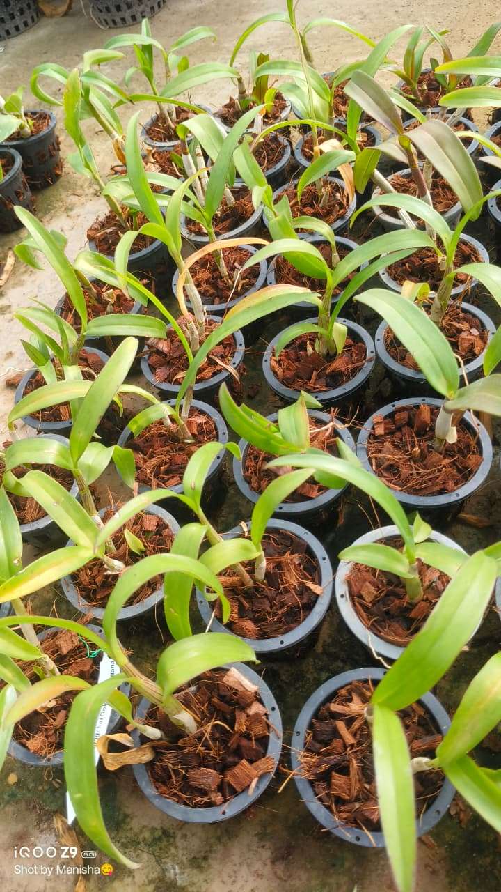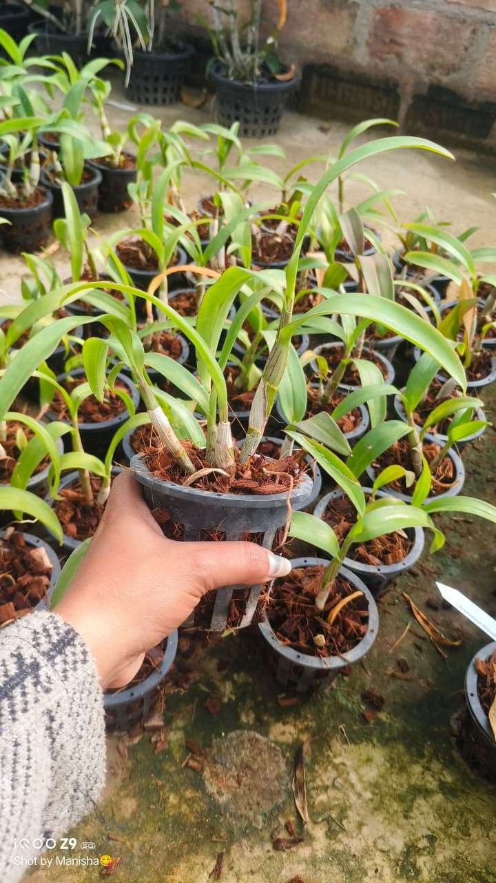 • A hybrid orchid from the Dendrobium genus, known for beautiful yellow blooms with contrasting lips. This orchid is typically a medium (M) size plant — meaning a mature plant that’s bigger than a seedling but not yet large/blooming-sized.