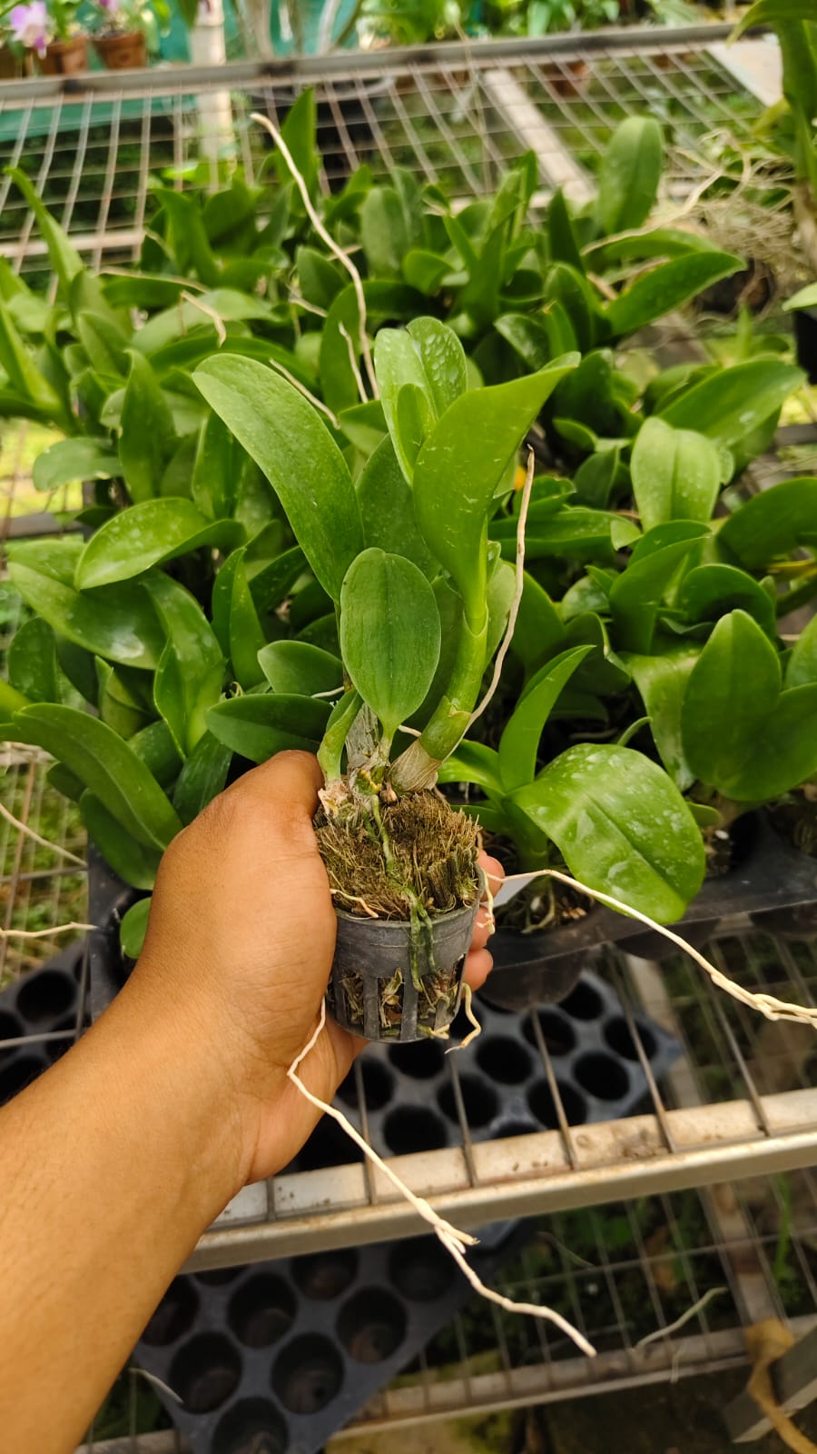 Dendrobium Thongchai × Chaisri is a vigorous, warm-growing hybrid orchid known for its colorful blooms, strong growth, and beginner-friendly nature. As a seedling, it requires patience but rewards with beautiful multi-flowered spikes once mature.