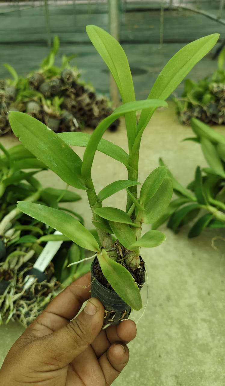 Bright, filtered light (50–70%). Warm conditions preferred: 22–30 °C day, 15–20 °C night. Water 2–3 times weekly, allowing the medium to dry slightly between watering. Maintain 50–70% humidity with good airflow. Feed with a balanced orchid fertilizer during active growth. Use a well-draining orchid mix. Cooler nights and bright light help promote flowering.