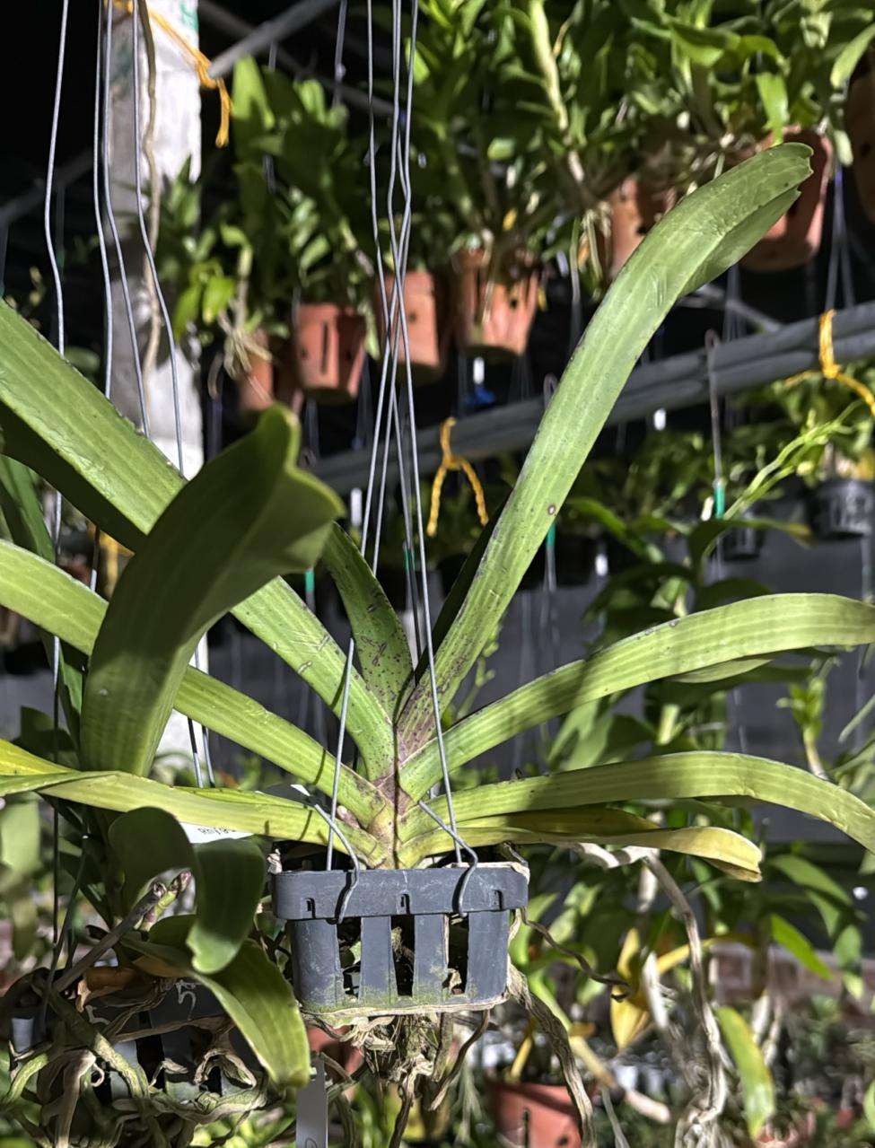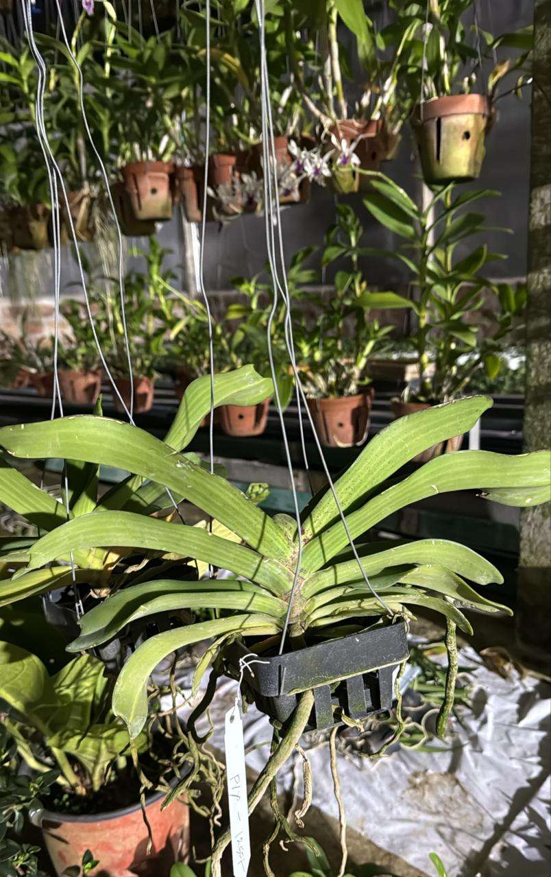 Rhynchostylis is a highly ornamental monopodial orchid genus prized for its dense, pendulous flower spikes. When in bud stage, the plant shows clear signs of an upcoming spectacular bloom.