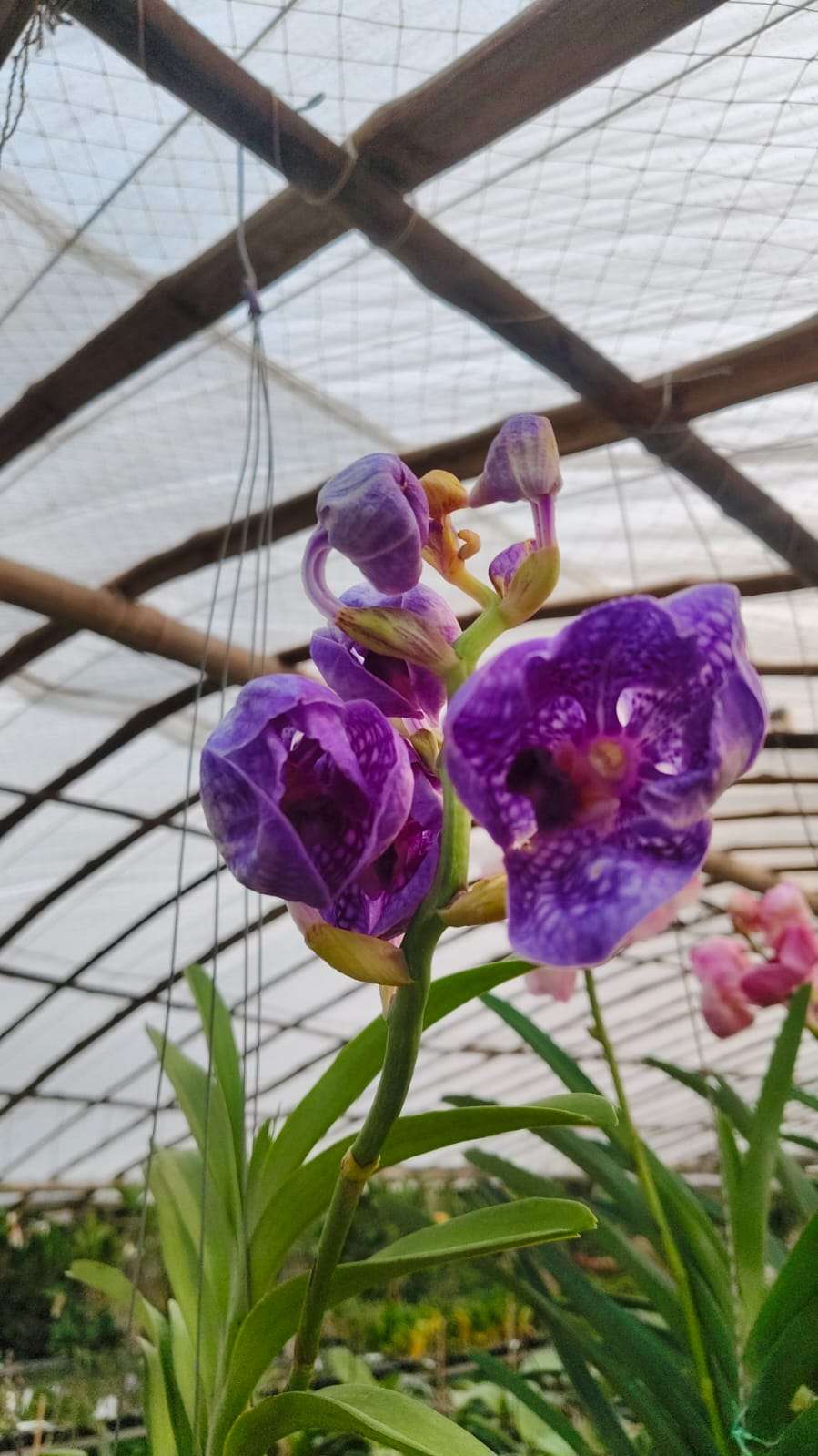 Vandas thrive in bright, indirect sunlight, warm temperatures, and high humidity, making them ideal for hanging baskets, open pots, terraces, greenhouses, and well-ventilated balconies. Once established, they are vigorous bloomers and can flower one to two times a year, sometimes more in optimal conditions.